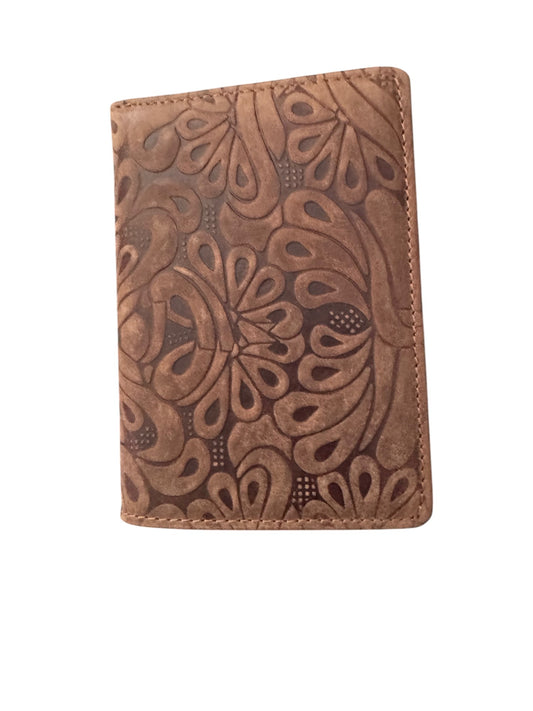 Tooled Brown Police Badge Wallet All Leather Universal Fit for Pin Back Badges