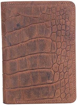 Police Badge Wallet All Leather Universal Fit- Brown Croc For Pin and Clip Back Badges