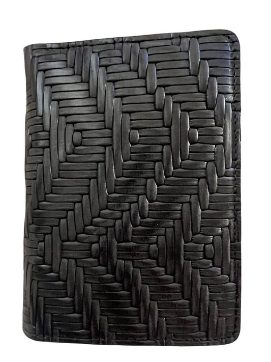 Police Leather Badge Wallet, For Pin Back Badges-Black Woven Leather