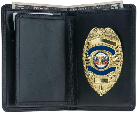Police Badge Wallet All Leather Universal Fit-Black for Pin and Clip Back Badges